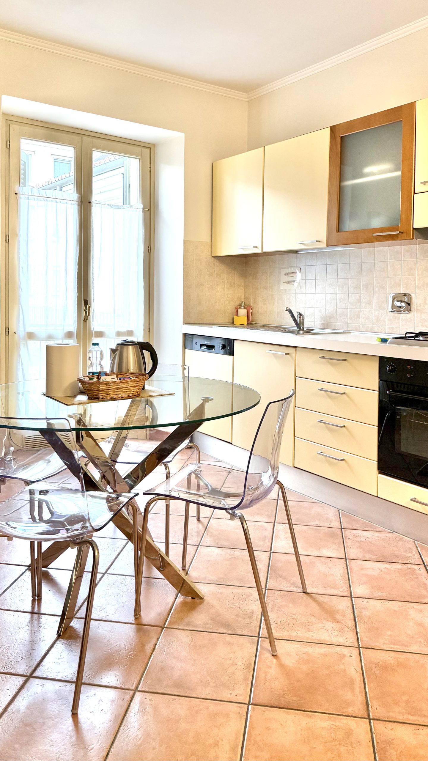 - Cucina completamente attrezzata, moderna e funzionale, dotata di piano cottura, frigorifero con congelatore, utensili, stoviglie, forno microonde, bollitore elettrico e macchina a cialde per il caffè